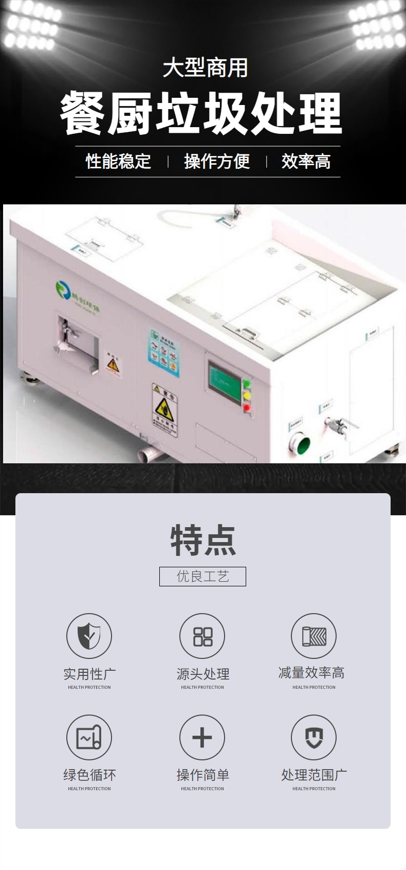 8、節(jié)能降耗:配備粉碎、濾水、脫水功能,高溫微生物發(fā)酵處理,從而大大降低能耗,比其他品牌同類產品節(jié)能50%以上。